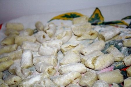 3. Formate gli gnocchi tagliando delle strisce di pasta a pezzetti, e lessateli in acqua salata. Nel frattempo mettete un bel pezzo di burro in un tegame e fatevi soffriggere le foglie di salvia per poi toglierle e conservarle a parte.